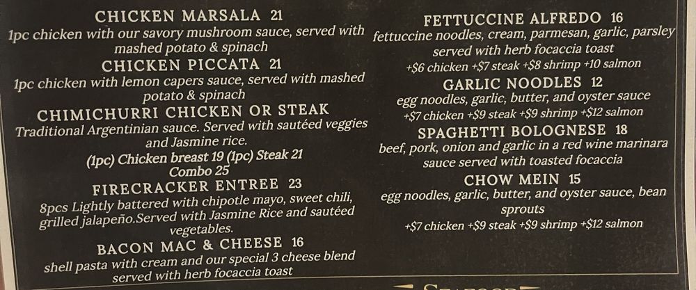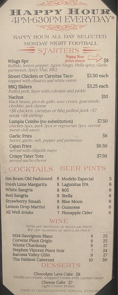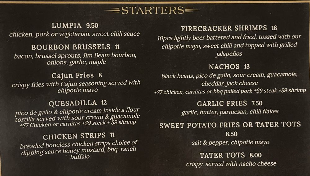 Introducing the menu at Chaplin’s Sports Bistro, located in Union City, CA, offers a variety of starters ranging from Calamari & Peppers to Hand Rolled Taquitos. Their Wings selection includes flavors like Buffalo and Garlic Parmesan, while their Tacos menu features options such as Street Tacos and Fish Tacos. Customers have praised the delicious food, with highlights such as the garlic noodles, steak nachos, and fish tacos. The service is outstanding, and the atmosphere is described as classy yet casual. With amenities like outdoor seating, a full bar, and TV screens for sports viewing, Chaplin’s is an ideal spot for enjoying a meal with friends or watching a game. The reviews highlight the friendly staff, great brews, and generous portions. Overall, Chaplin’s Sports Bistro is a must-visit for those looking for tasty food, a relaxed vibe, and excellent service.