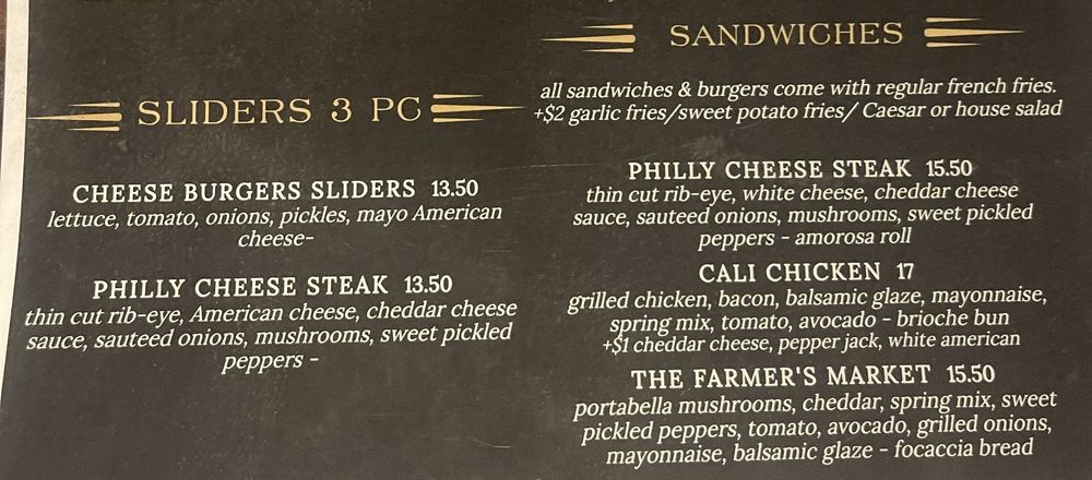 thin cut rib-eye, American cheese, cheddar cheese sauce, sauteed onions, mushrooms, sweet pickled peppers - amorosa roll